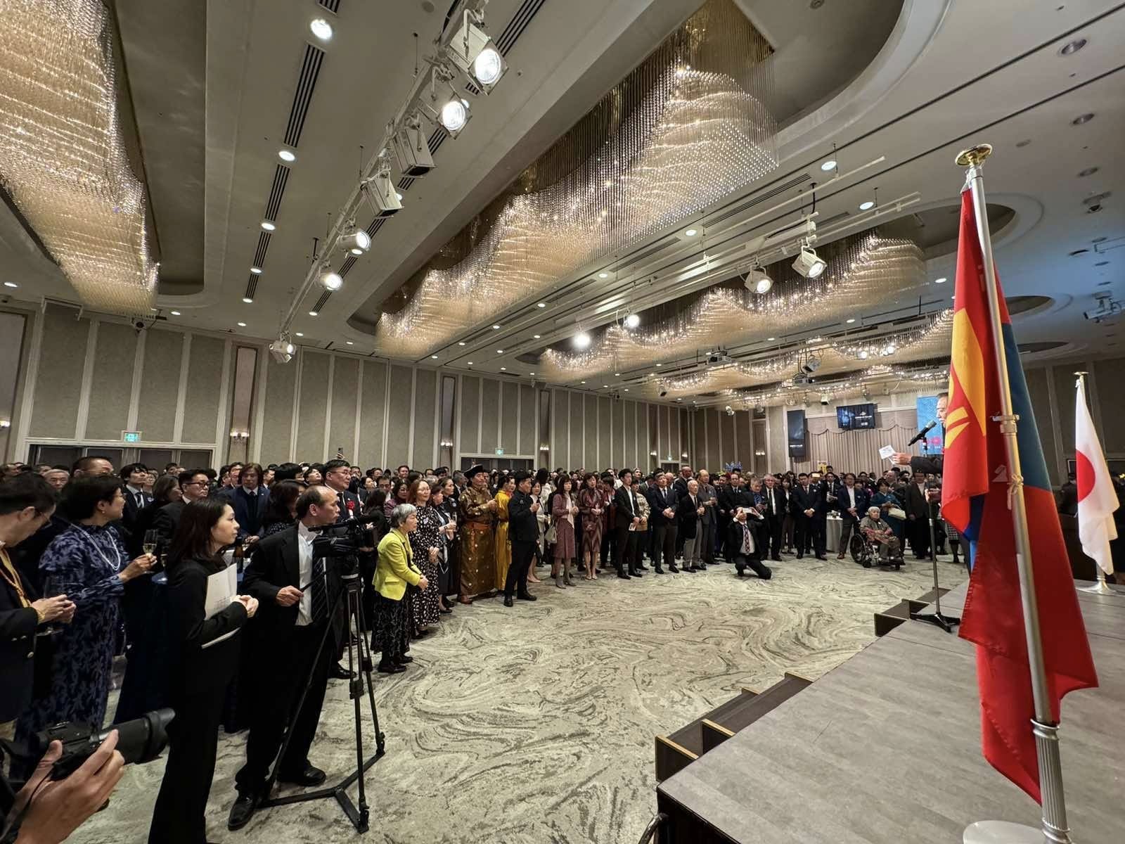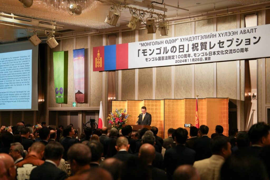 2024年11月26日、モンゴル共和国建国100周年およびモンゴル・日本文化交流協定締結50周年を記念し、「モンゴルの日」祝賀行事が東京・明治記念館で開催されました。 本イベントには、モンゴルおよび日本の政府関係者、文化・民間団体代表を含む750名以上が参加。バヤルサイハン駐日モンゴル大使の挨拶に加え、バトツェツェグ外務大臣のビデオメッセージが披露されました。また、加藤勝信財務大臣、あべ俊子文部科学大臣、長島昭久内閣総理大臣補佐官(日本モンゴル友好議員連盟会長)らが祝辞を述べ、両国の戦略的パートナーシップのさらなる発展を確認しました。 文化・観光プロモーション モンゴル政府の「GO Mongolia」キャンペーン(2023~2028年)に関連し、モンゴルの魅力を伝える写真展「Amazing Mongolia」が同時開催。また、2025年秋には、モンゴルの歴史を描いた舞台芸術『モンゴル・ハーン』が東京・名古屋で公演予定であることが発表されました。 モンゴル文化の紹介 会場では、モンゴル民族楽器グループ「イフ・タタラガ」や舞踊団「フン・テアトル」が音楽と舞踊を披露。さらに、モンゴル特産品であるHush Khanの松の実、全粒粉を使用した菓子・料理、APU社のアルヒ(ウォッカ)カクテルなどが紹介されました。 友好関係の発展 イベントの最後には、バヤルサイハン大使より、モンゴルと日本の友好関係の発展に貢献した功労者へモンゴル国家勲章が授与されました。本祝賀行事は、両国の交流をさらに深める貴重な機会となりました。
